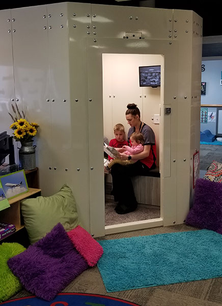Importantly the well-lighted very comfortable little safe room shelters are also used daily as a highly functional part of the classrooms, and being used daily they are unintimidating to kids when needed for their safety.