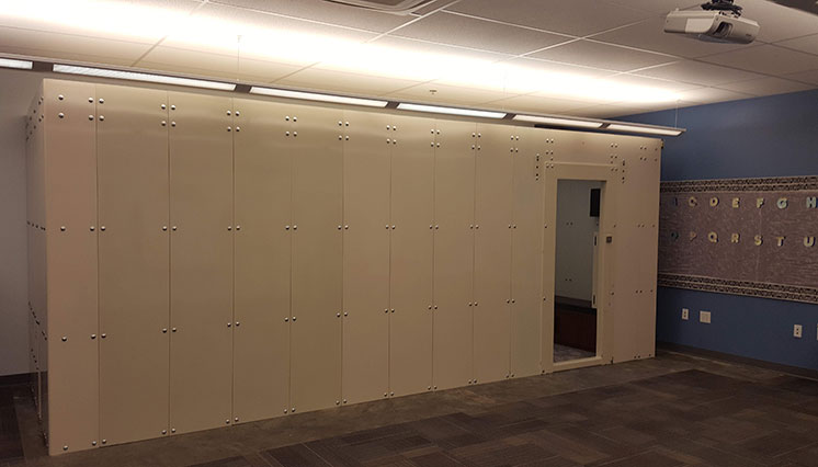 Our shelters use some of the best technology available, and all equipment can be upgraded. Inside the classroom, is a bulletproof tornado shelter that can save lives. It is made from hardened steel plates with a proprietary patent pending material “sandwiched” between steel plates. This material is what keeps bullets from entering the shelter.