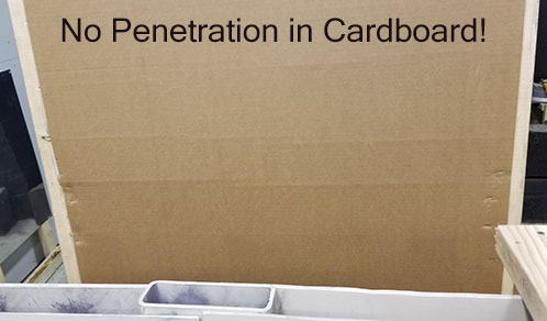Cardboard is placed behind the steel being tested. If any fragments get through the steel they will show on the cardboard.